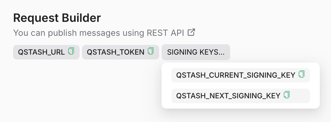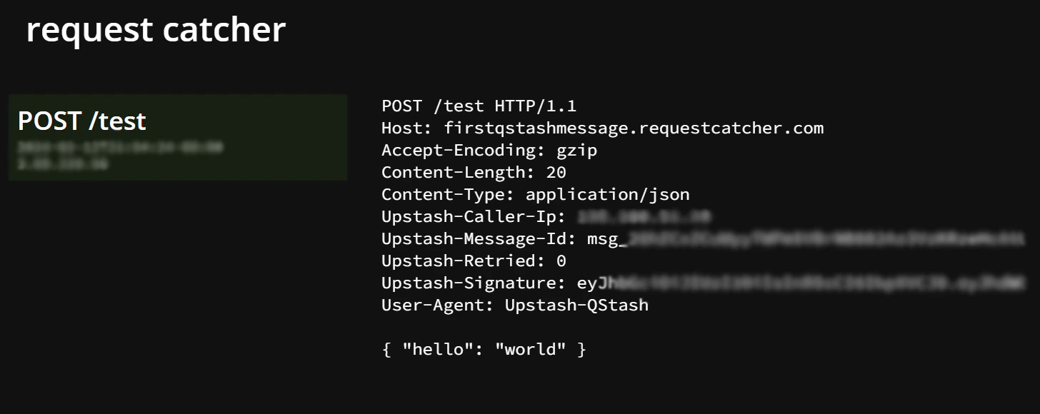 Make sure you have a publicly available HTTP API that you want to send your messages to. If you don’t, you can use something like requestcatcher.com, webhook.site or webhook-test.com to try it out. For example, you can use this URL to test your messages: https://firstqstashmessage.requestcatcher.comGet your token
